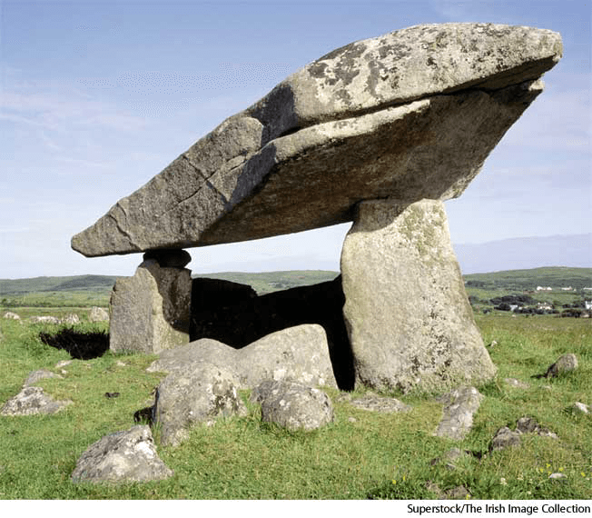 dol·men AHD[dōlʹmən, dŏlʹ-] D.J.[ˈdəʊlmən, ˈdɒl-]K.K.[ˈdolmən, ˈdɑl-]n.(名词) dolmenKilclooney Dolmen near Ardara,County Donegal, Ireland- A prehistoric megalithic structure consisting of two or more upright stones with a capstone, typically forming a chamber.石棚:常作寝室的史前巨石结构,由二块或多块矗立的石头和一块覆盖的石头构成