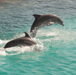 The dorsal fin of a dolphin.