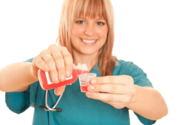 A nurse measuring out a dose of medicine.