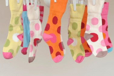 Dots on socks.