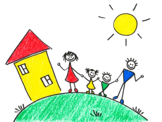 A child's drawing of her home and family.