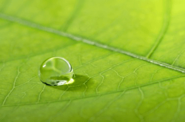 A drop of water sitting on a leaf.
