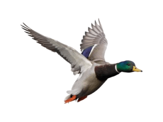 A Mallard duck in flight.