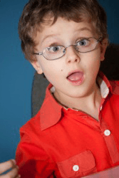 Something has amazed this little boy.