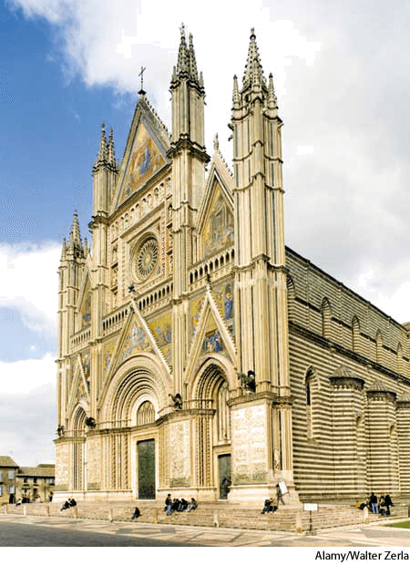 Gothic façade of the Cathedral of Orvieto, designed by Lorenzo Maitani (1255-1330)