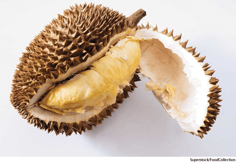 - The fruit of this plant, having a hard, prickly rind and soft pulp with an offensive odor but a pleasant taste.榴莲果:榴莲树的果实,果皮有硬刺,果肉柔软,有刺激性气味,但味道可口