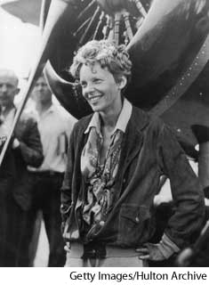 1. American aviator who was the first woman to fly solo across the Atlantic Ocean (1932) and from Hawaii to California (1935). While attempting to fly around the world, she crashed in the Pacific Ocean (1937) and was never found.埃尔哈特,阿梅莉亚:(1897?-1937) 美国飞行员,是第一位单人穿越大西洋(1932年)并从夏威夷飞抵加利福尼亚(1935年)的女性。当她尝试环球飞行时,在太平洋中坠机并失踪(1937年)