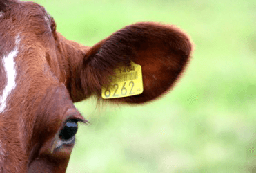 A cow wearing an earmark.