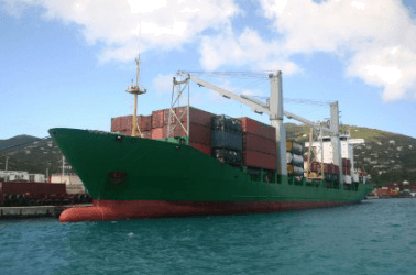 This ship carries goods made abroad.