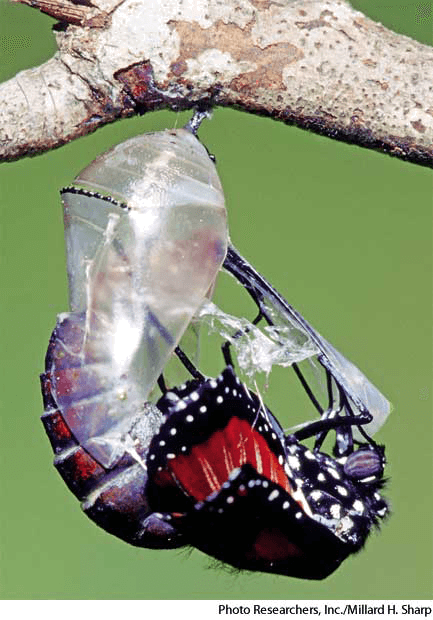 e·clo·sion AHD[ĭ-klōʹzhən] D.J.[ɪˈkləʊʒən]K.K.[ɪˈkloʒən]n.(名词) eclosiona queen butterfly, Danaus glippus, emerging from its chrysalis- The emergence of an adult insect from a pupal case or an insect larva from an egg.孵化:成虫从蛹中孵出来,或幼虫从卵中孵化出来