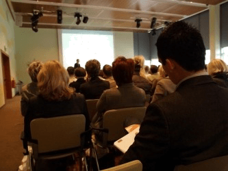 People attending an educational lecture.