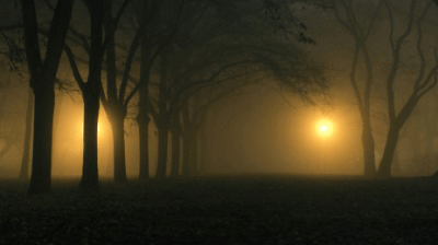 An eerie forest.