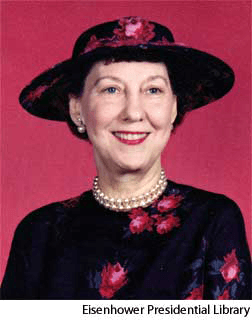 Eisenhower, Mamie Geneva Doud (Born 1896)NONE(无词性) Mamie Eisenhower- First Lady of the United States (1953-1961) as the wife of President Dwight D. Eisenhower. She worked tirelessly to fulfill the growing number of commitments demanded of a First Lady.艾森豪威尔,玛米·杰尼瓦·杜德:(生于 1896) 美国第一夫人(1953-1961年),美国总统德怀特·D·艾森豪威尔之妻, 她不倦地工作,完成了对第一夫人提出的日益增加的大量任务