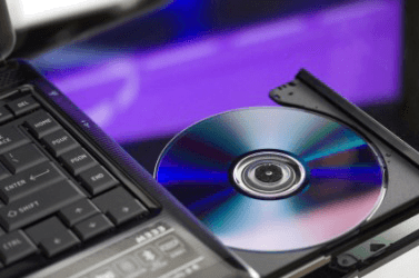 A CD being ejected from a computers CD drive.