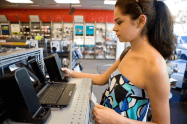 A woman shopping in an electronics store.