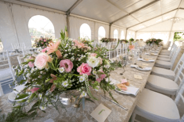 An embellishment of flowers on a table.