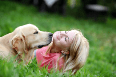 An endearing moment between a girl and her dog.