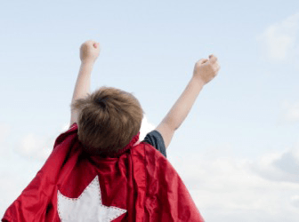 A child envisaging himself as a superhero.