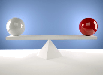 Two spheres of equal weight.