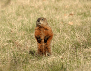 A groundhog standing erect.