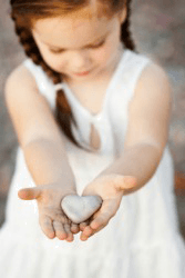 A little girl extends her arms to offer a gift.