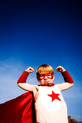 A child fantasizes about being a superhero.