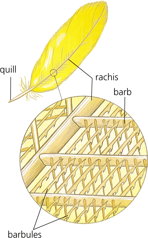 feath·er AHD[fĕY“ər] D.J.[ˈfeðə]K.K.[ˈfɛðɚ]n.(名词) typical flight feather (left) and a magnified view of vanes (right)Elizabeth Morales feathertop: typical flight feather and a magnified viewbottom: on a Shire horse's leg- One of the light, flat growths forming the plumage of birds, consisting of numerous slender, closely arranged parallel barbs forming a vane on either side of a horny, tapering, partly hollow shaft.羽毛:构成鸟类羽毛的轻且平的一种生长物,由大量细长的、紧密并列的钩在一个角状的、中空的锥形羽轴两边所形成的羽片