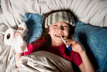 A little girl feigns illness.