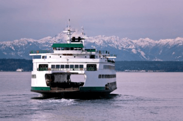 A ferry leaves Seattle.