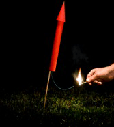 A firework being lit.