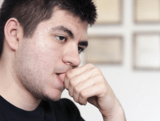 This man's fixation is biting his nails.