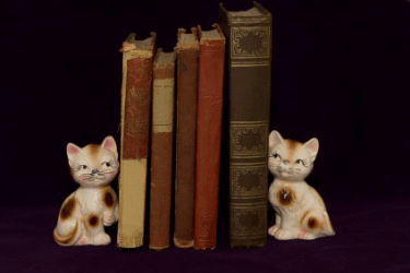 These cat bookends flank these books.