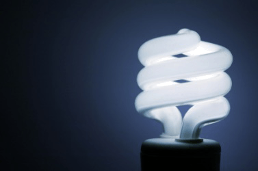 A compact fluorescent light bulb.