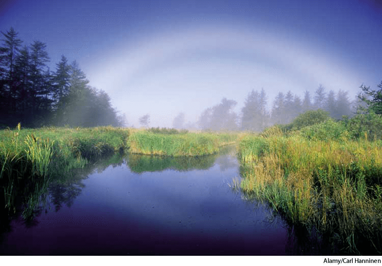 fog·bow AHD[fôgʹbō', fŏgʹ-] D.J.[ˈfɔːgˌbəʊ, ˈfɒg-]K.K.[ˈfɔgˌbo, ˈfɑg-]n.(名词) fogbow- A faint white or yellowish arc-shaped light, similar to a rainbow, that sometimes appears in fog opposite the sun. Also called seadog 雾虹:有时在雾中逆光处出现的与彩虹相似的弧状模糊的白色或微黄的光 也作 seadog