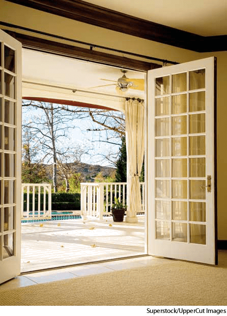 法国式门:装有延伸至最大长度的玻璃嵌板的轻型门,常指一对门的一扇