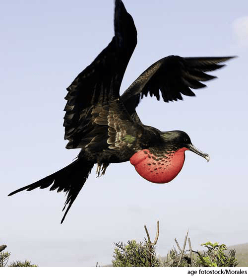 frigate birdn.(名词) frigatebirdmale magnificent frigatebird, Fregata magnificens, during courtship display- Any of various tropical sea birds of the family Fregatidae that have long, powerful wings, dark plumage, and a hooked beak and characteristically snatch food from other birds in flight. Also called man-o'-war bird 军舰鸟:所有属军舰鸟科目的热带海鸟,有长而有力的翅膀、黑羽、钩形喙,以与其它鸟类争夺食物而著称 也作 man-o'-war bird
