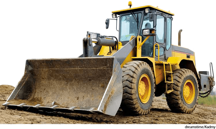 前端装载机:一种带有绞链的铲斗泥土挖掘机,用来装运或搬运泥土或瓦砾