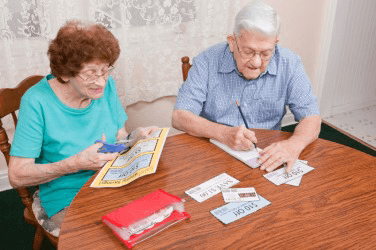 A couple being frugal by clipping coupons.