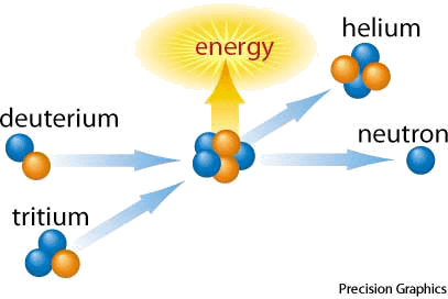 1. Physics A nuclear reaction in which nuclei combine to form more massive nuclei with the simultaneous release of energy.【物理学】 核聚变:一种由原子核结合成更大的核,同时释放出能量的核反应