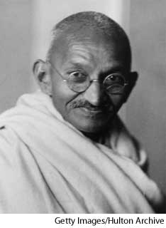 Gandhi, Mohandas Karamchand Known as "Mahatma.”(1869-1948)NONE(无词性) Mahatma Gandhi- Indian nationalist and spiritual leader who developed the practice of nonviolent disobedience that forced Great Britain to grant independence to India (1947). He was assassinated by a Hindu fanatic.甘地,穆罕达斯·卡拉姆昌德:(1869-1948) 印度民族主义者和精神领袖,推动了非暴力不抵抗运动并迫使英国于1947年允许印度独立,被一个印度教狂热分子暗杀