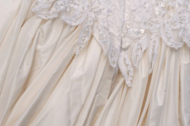 Gathered fabric on a wedding dress.