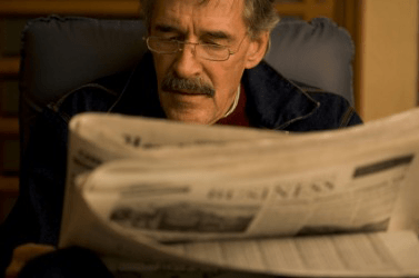 A man reading a gazette.