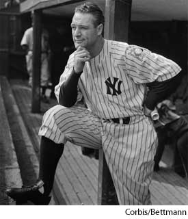 Geh·rig AHD[gĕrʹĭg] Henry Louis Known as "Lou.”(1903-1941) D.J.[ˈgerɪg]K.K.[ˈgɛrɪg]NONE(无词性) Lou Gehrigphotographed in 1939- American baseball player. In 14 seasons with the New York Yankees (1925-1939), Gehrig was the American League's most valuable player 4 times. He earned a career batting average of .340.格里克,亨利·路易斯:(1903-1941) 美国棒球运动员,曾经有14个赛季在纽约扬基队(1925-1939年),格里克四次成为美国最优秀的运动员。在其职业生涯的击球率为.340