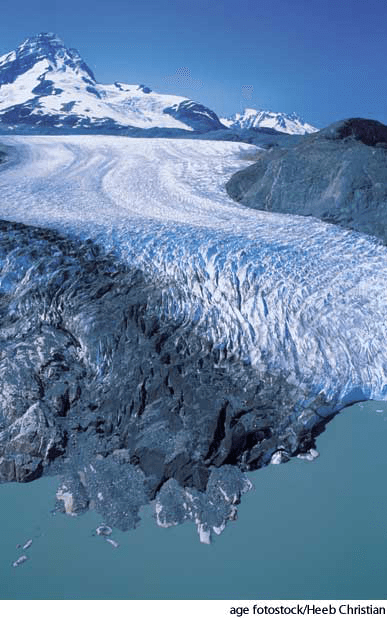 gla·cier AHD[glāʹshər] D.J.[ˈgleɪʃə]K.K.[ˈgleʃɚ]n.(名词) glacierJacobsen Glacier in the Monarch Icefield of the British Columbia Coastal Range, Canada- A huge mass of ice slowly flowing over a land mass, formed from compacted snow in an area where snow accumulation exceeds melting and sublimation.冰川:巨大的冰块在巨大的地上慢慢滑动,由于一个地区雪的积累超出了融化和升华而形成的结实的雪形成了冰川