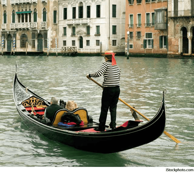 - A lightweight narrow barge with ends that curve up into a point and often a small cabin in the middle, propelled with a single oar from the stern and used on the canals of Venice.刚朵拉:一种狭长的轻型平底船,船头船尾沿曲线形成一点,船中部通常有小船舱,船尾用单桨划水前进,在威尼斯水道上使用