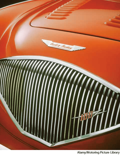 grille 也作 grill AHD[grĭl] D.J.[grɪl]K.K.[grɪl]n.(名词)   grilletop: at a windowbottom: on a 1956 Austin Healey- A grating of metal, wood, or another material used as a screen, divider, barrier, or decorative element, as in a window or on the front end of an automotive vehicle.护栅,格栅:用木头、金属或其它材料制成用来屏闭、分隔、障碍或装饰的格栏或格栅,如窗上的拦杆或车辆前端的护栅