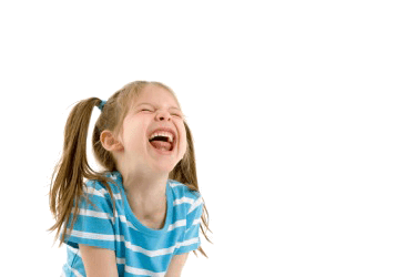 A child guffaws.