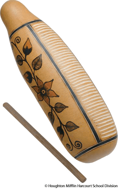 gui·ro AHD[gwēʹrō, gwîrʹō] D.J.[ˈgwiːrəʊ, ˈgwɪərəʊ]K.K.[ˈgwiro, ˈgwɪro]n.(名词)pl. gui.ros  guiro- A Latin American percussion instrument made of a hollow gourd with a grooved or serrated surface, played by scraping with a stick or rod.葫芦锯琴:拉丁美洲的打击乐器,以有着沟槽或是锯齿状表面的中空葫芦制造,以棍棒或是杆棒刮擦以演奏出音乐
