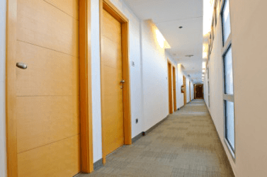 A hall in a hotel.