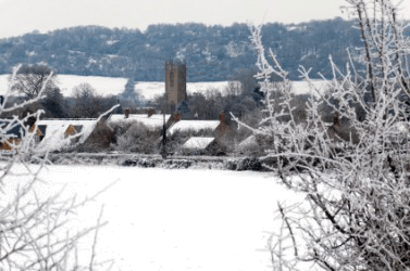 A snow covered English hamlet.
